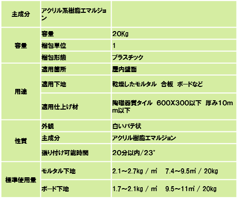 大型タイル用接着材